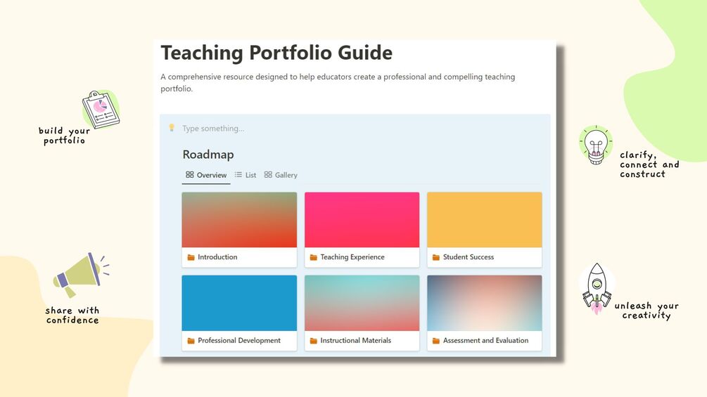 The template includes pre-designed pages for your personal statement, teaching philosophy, student feedback, and more, providing you with a foundation to build upon.